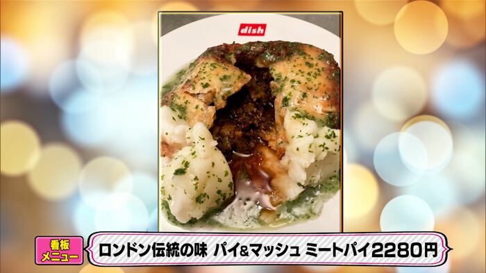 お店の看板料理は、「ロンドン伝統の味 パイ&マッシュ ミートパイ」(2280円)。本場で修業をしたシェフが手がける自信作となります。