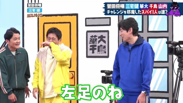 大悟さんが「最低のパス!蹴ろうとしてる(大吉)先生に、とんでもないことしたぞ」と責めると、菅田さんは両手を合わせて平謝り。