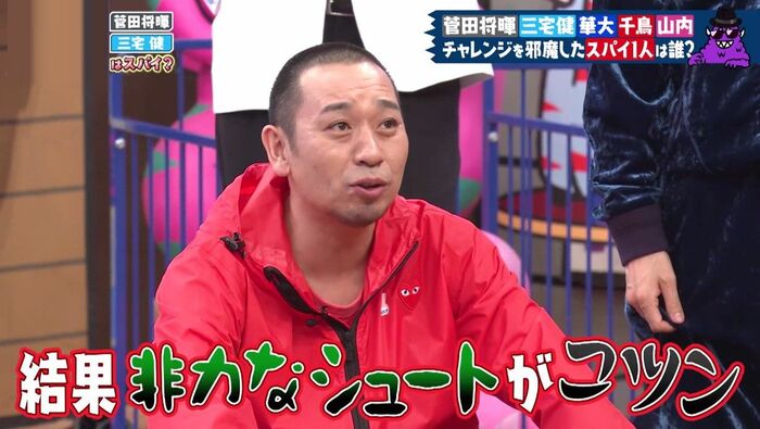 また、三宅さんは的がないところにシュートが飛んでいってしまったため、「あんなところ、なんもない!」(ノブ)と指摘され、疑いが強まりました。