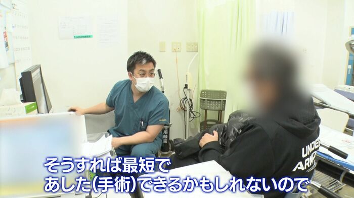 医師「鎖骨の真ん中が折れちゃってる。きょうはこのまま入院してもらって、そうすれば最短であした(手術)できるかもしれないので」