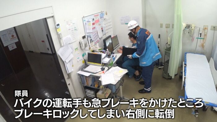 急性アルコール中毒の患者の搬送が続く中、近くでタクシーとバイクの接触事故が起きたとの知らせが入りました。