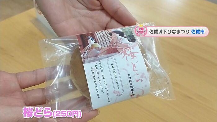 会場のひとつである「旧古賀銀行」ではひな人形が飾られる中、さくらあんが入った「桜どら(250円)」が今回、初めて販売されています。
