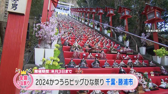全国から寄贈されたひな人形が飾られる千葉・勝浦市の「2024かつうらビッグひな祭り」。