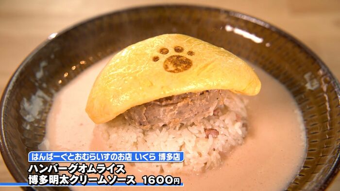 続いては、ハンバーグが豪快に乗った肉球印の『ハンバーグオムライス 博多明太クリームソース』。