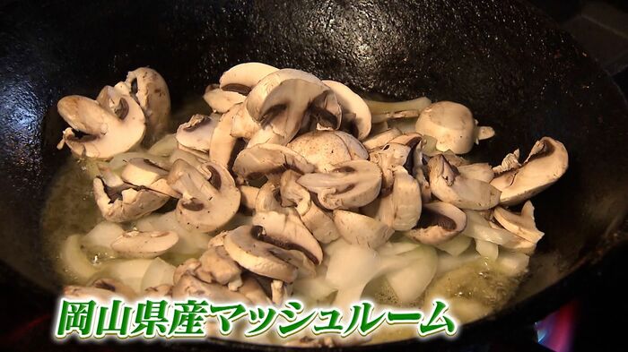 味のポイントの一つは、香りが強くて食感がいい岡山県産のマッシュルーム。