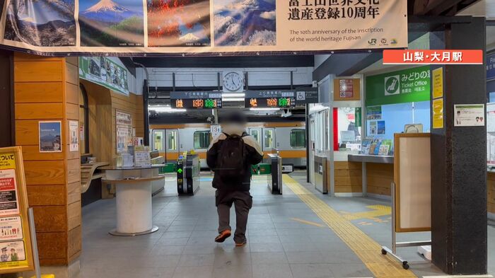 ここ大月ですよね…。(電車に乗ったのは)東京駅からです。