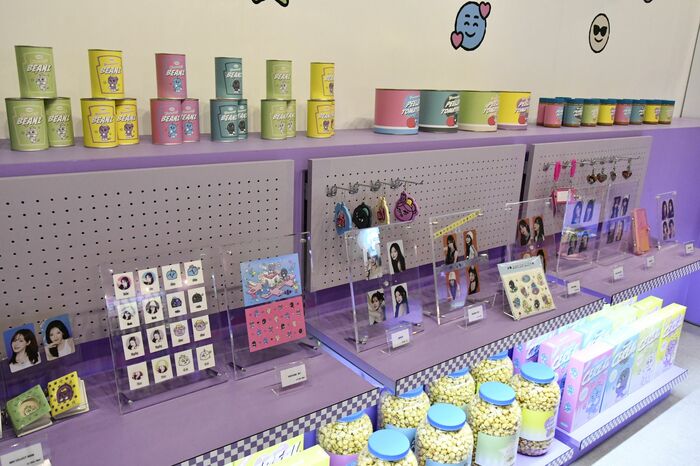 奥には韓国で開催された展示会のグッズがズラリと並んでいます。かわいい空間でお買い物が楽しめるので、財布の紐が緩んでしまいそうです。
