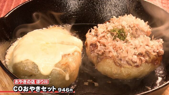 1品目は、チーズとお好み焼き風の2種類の味が楽しめる、一風変わった新ご当地グルメ「COおやきセット」。