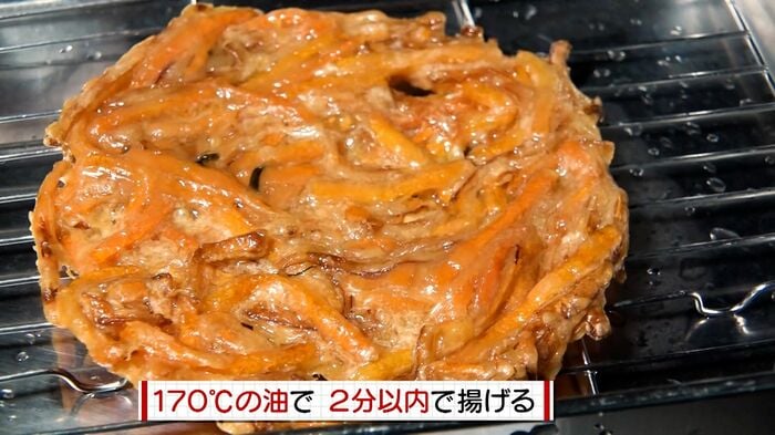 料理のポイントは揚げ方。するめいかが固くならないよう中温の170度で2分以内に揚げることで香ばしさとうまみが引き出しています。