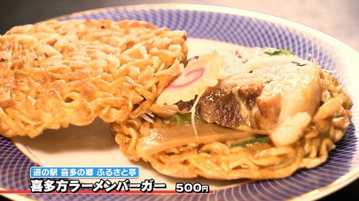 続いては、福島県のご当地ラーメン「喜多方ラーメン」が進化形したグルメ『喜多方ラーメンバーガー』。