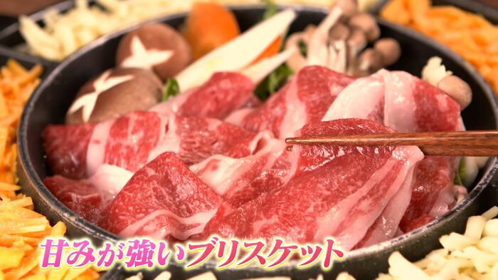 すき焼きには、濃厚な甘みと強い風味が特徴のブリスケットと部分を大判で使用。