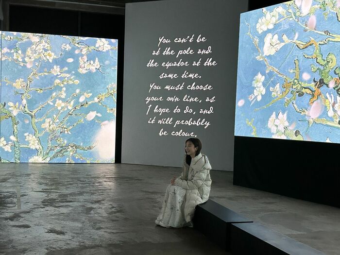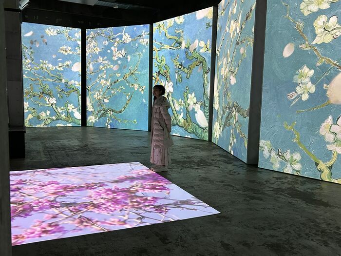これ以外にも、壁と床の“作品&実写”のコンビネーションが見事です。壁は「ヒマワリ」で、床はリアルなひまわり畑、あるいは壁は「花咲くアーモンドの木」で、床の絵がリアルな桜など、他にはどんなマッチングが?とワクワクしてしまいます。