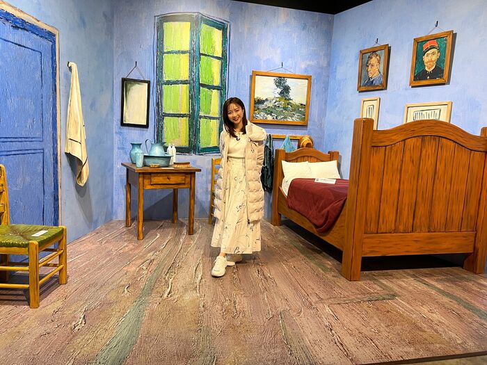 「星月夜」がモチーフのキラキラカーテンの部屋は自撮り向きですし、「アルルのフィンセントの寝室」のセットはあの名画の中に入り込めます。
