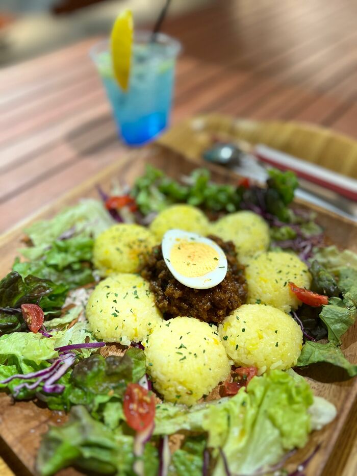 「星月夜」をテーマにしたブルーのカクテルは「さわやか~」だそうで、レモンを入れると色が変わるホットティもサプライズ感あり、一休みしながらゴッホ感で満たされます。