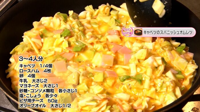 4つめは、ひっくり返さなくても作れるキャベツたっぷりのオムレツ。