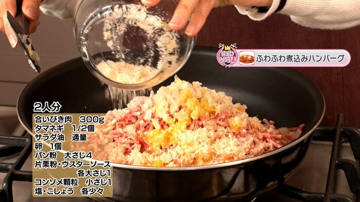 続いては、手で直接成型せずに作れる、ふわふわ煮込みハンバーグ。