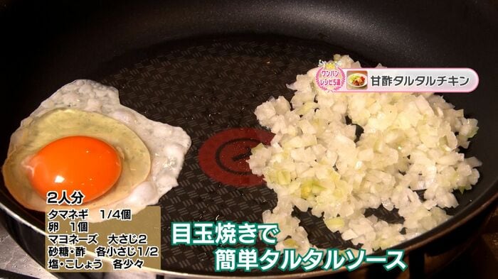 ゆで卵を作る時間を短縮し、目玉焼きで簡単タルタルソースを準備。