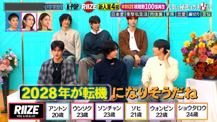 彌彌告さんによると、RIIZEはメンバー全員、2025年・2026年は絶好調で「間違いなくグループごと跳ねる」そう。転機は少し先、2028年だと言います。