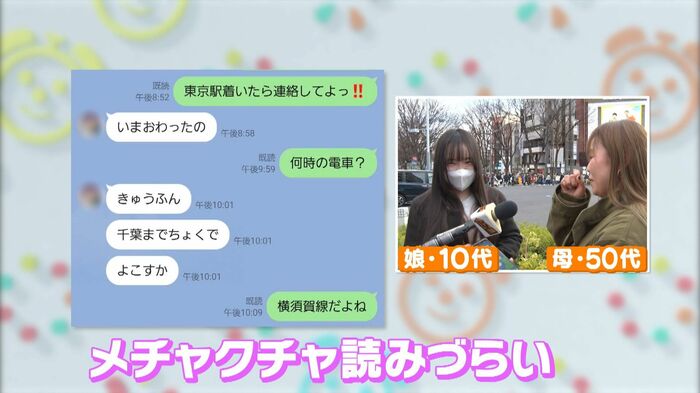 街で出会った10代の女性にLINEのやりとりを見せてもらうと、トーク画面は“ひらがな”ばかり。