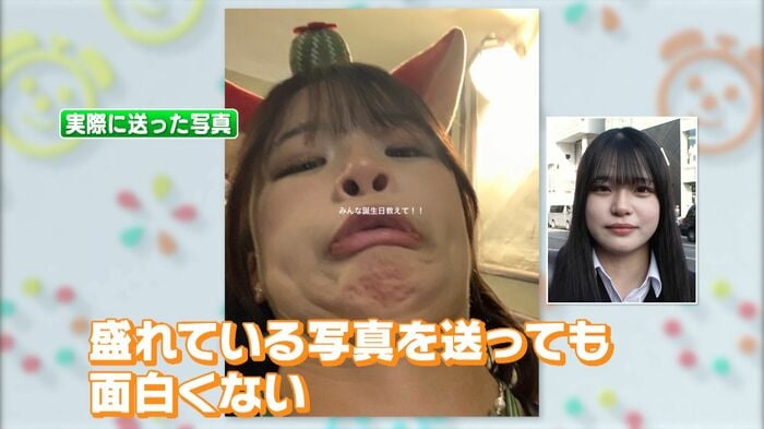 なんと、下からのアングルで自分の顔を撮影した、“盛れ”とは正反対の写真を友達に送っていました。