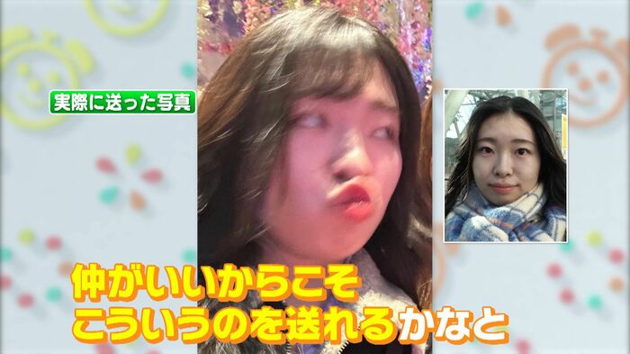 他にも友達に変顔を送るという女性が!こちらの女性は口をとがらせて目線を横に向けた写真を親しい友人に送っていました。