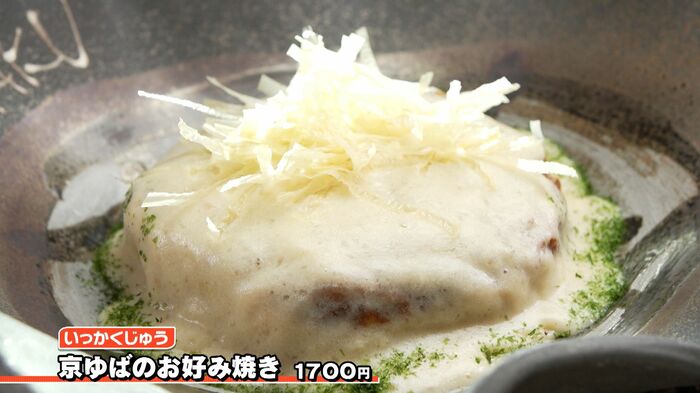 1品目は、京都のゆばを使用した白いお好み焼きとして人気の「京ゆばのお好み焼き」。