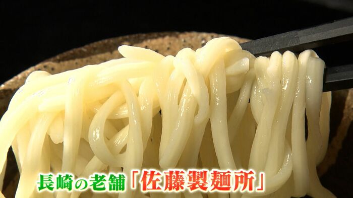 ツルツルもちもちの食感が特徴で、100年近くの歴史を持つ長崎の老舗「佐藤製麺所」のものを使用。たっぷりのお湯の中で踊るように茹でられた麺は、その美味しさを損なわないよう冷水でしっかりと洗い、ぬめりを落としています。