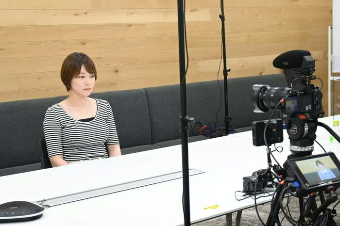 本番前には、配信を行うスタジオへ。配信スタッフへ挨拶を済ませ、座り位置や目線の高さを確認していた。「緊張はしていない」と事前に話していたが、その表情はちょっと緊張している?ようにも見えた。