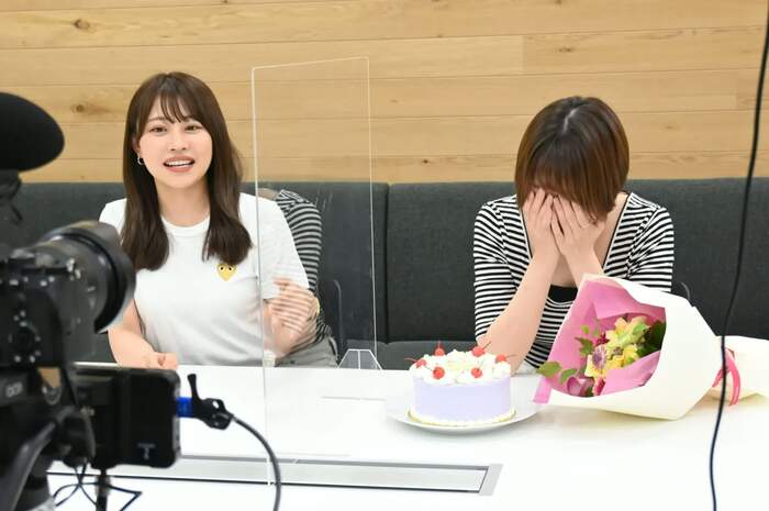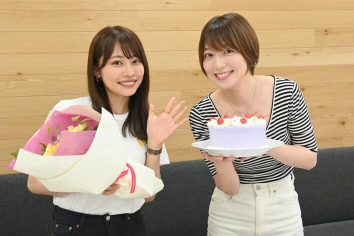 その後、サプライズで同じ事務所に所属し、プライベートでも仲の良い高木由梨奈が、誕生日を控えた阿部のバースデーを祝おうと花束を持って登場!「高木さんといると、私はよくしゃべる」と言うように、一層、リラックスした雰囲気で仲良しトークを繰り広げた。