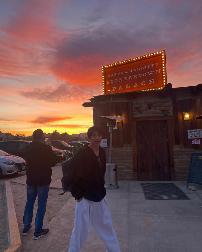 アメリカ・カリフォルニア州にある、西部劇のような世界が再現された街「パイオニアタウン」。かつてはポール・マッカートニーさんなどが屋外でライブパフォーマンスをしたレストランに訪れたようで、夕日をバックに入り口の前を歩くようなショットがアップされています。今後もアメリカを満喫するショットが見られるのか、楽しみですね!