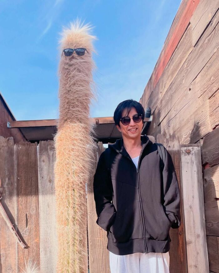 大沢さんより高く伸びた、サングラス姿のサボテンの横に立ち、笑顔を浮かべる様子など、おちゃめな姿を見せていました。
