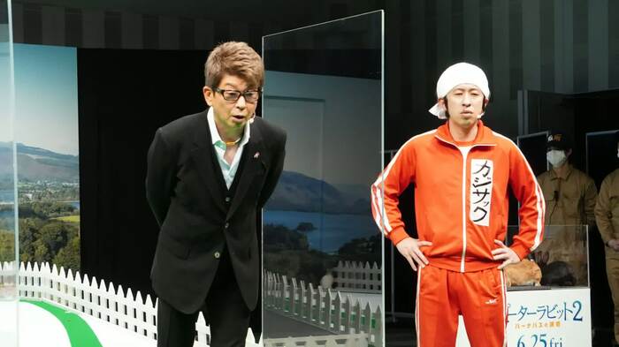 最後に哀川は「ぜひ、公開を楽しみにしていただきたい」とコメント。カジサックは「あまり話すとネタバレになってしまうんですけど、すごく楽しい内容で、僕、子ども5人いるんですけど全員連れて見にいきたいです」と語った。