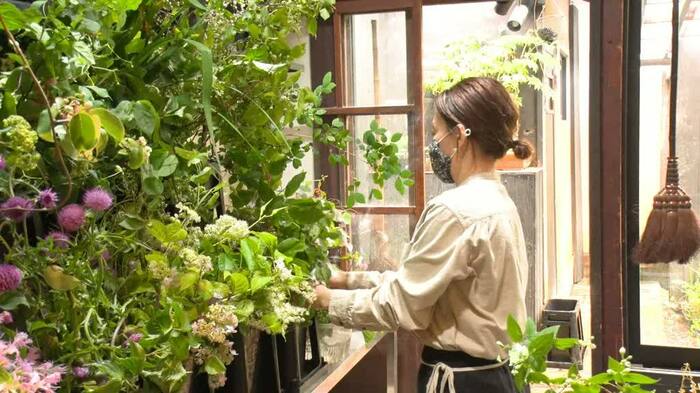 「“花を売る”よりも“季節を売る”仕事をしたい」と語る彼女。店内に並ぶ、自然そのままの美しい草花や花木は売り物ではなく、あくまでお客さんの好みを知るための観賞用。完全予約制で、1時間かけてお客さんの好みを聞き出す独自の販売スタイルで、自らの思いをお客さんに届ける。