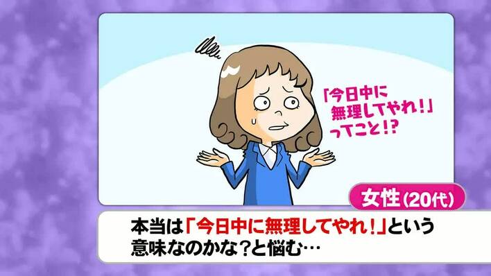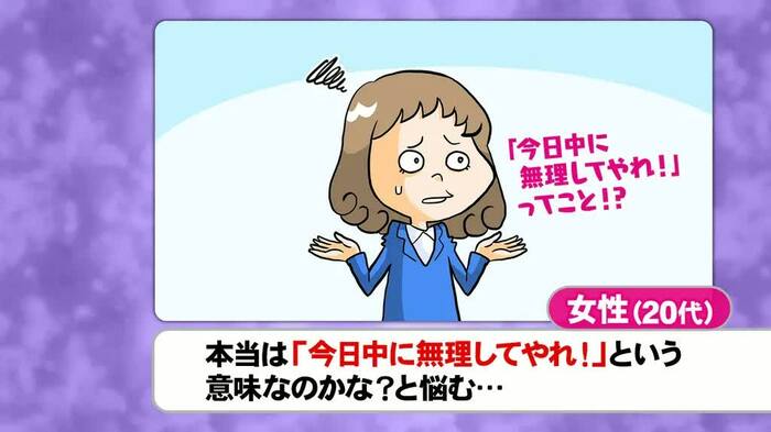 そんな中、紹介されたのは「上司から『今日中にやらなくていい』と言われると、逆に『今日中にやれ』と言われているのではないかと悩んでしまう」という20代女性のエピソード。