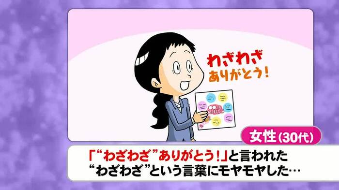 庄司が「『わざわざありがとう』とメールを送った後、『わざわざ』は余計だったかなと気にしてしまう」と言うと、峯岸も千秋も同意。投票の結果は「気にする=16%」「気にしない=84%」となったが、スタジオでは「わざわざ」という言葉のニュアンスが難しいという結論になった。