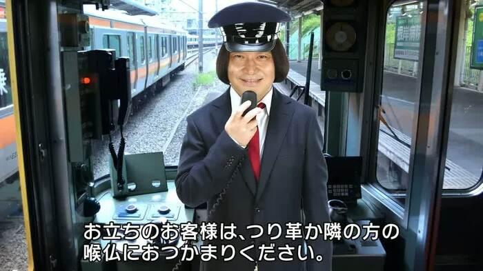 お立ちのお客様は、つり革か隣の方の喉仏におつかまりください。