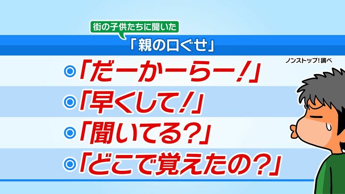 さらに、「早くして」「(そんな言葉を)どこで覚えたの?」など、子どもたちが「親に言われて嫌だった」と口ぐせも紹介されました。