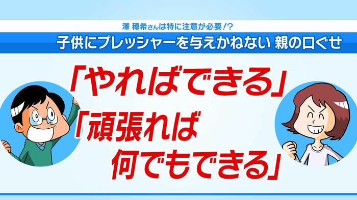 「やればできる」「頑張ればできる」という言葉も“悪魔の口ぐせ”になってしまうという馬場さんの言葉を受けて、澤さんは「自分は『澤穂希は絶対できる』と思ってきたので、娘にかるた大会の日に『頑張ってね』と声をかけたら、『プレッシャーになるから言わないで』と言われた」と、実体験を明かしました。