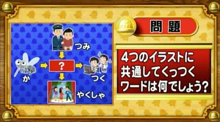 次は、くっつきワードの問題。次の4つのイラストに共通してくっつくワードを答えよ!