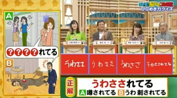 正解は「うわさされてる(噂されてる/うわ 刺されてる)」。見事全員正解!