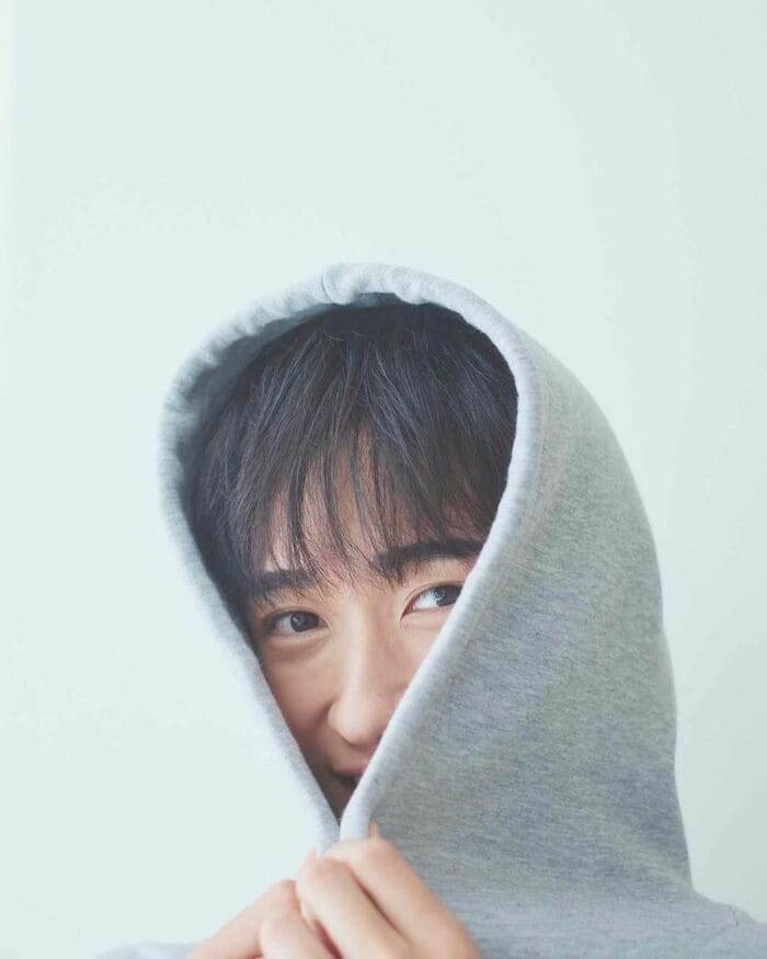グレーのパーカー姿でフードをかぶって顔をひょこっとのぞかせている様子も!
