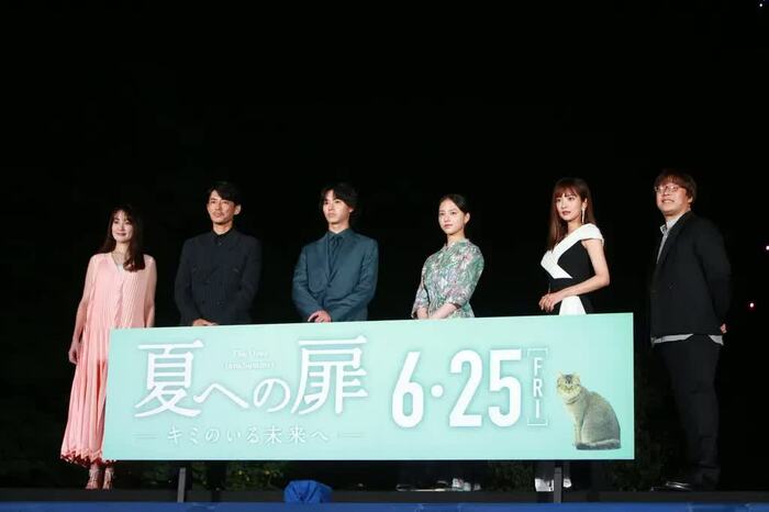 6月6日(日)、山﨑賢人が主演を務める映画「夏への扉-キミのいる未来へ-」の公開記念イベントが行われ、共演の清原果耶、藤木直人、夏菜、高梨臨、三木孝浩監督と共に出席した。