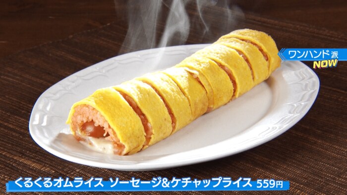 さらに、オムライスもワンハンドで食べる時代が来たんです!その名も「くるくるオムライス ソーセージ&ケチャップライス(559円)」