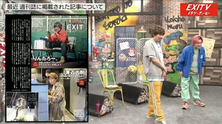 冒頭のフリートークでは、先月、週刊誌に掲載された記事について盛り上がった。「撮られちゃいましたね~。俺、終わったのかなと思いました」と兼近が笑顔で反応すると、りんたろー。は「そんな記事じゃないし」と笑いながら、2人がオフの日に撮られた実際の記事を紹介する。