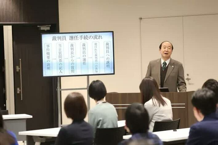 書記官の川添(中村梅雀)を中心にさっそく裁判員の選任手続きが行われ、その結果、塾講師の大前正一(山崎銀之丞)、結婚相談所勤務の落合清美(池津祥子)、土木作業員の田部公平(山口森広)、主婦の立原理沙子(太田順子)、証券マンの西園寺勝則(永田崇人)、大学生の小中渚(羽瀬川なぎ)の6名が選ばれる。