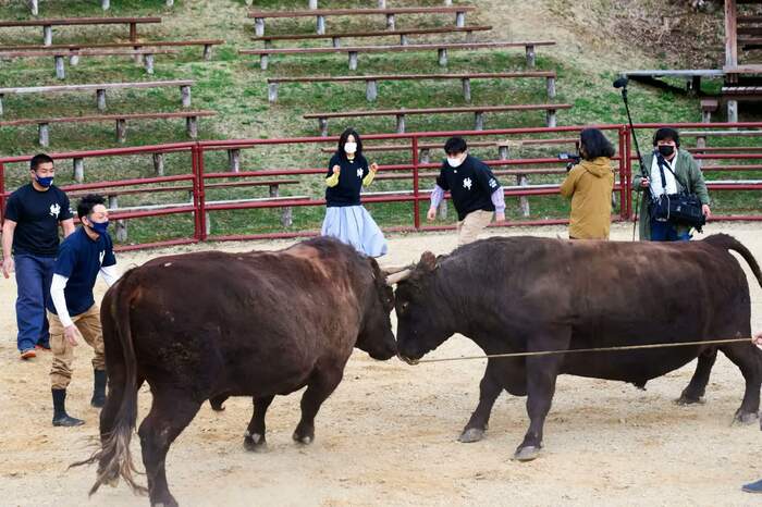 闘牛には相撲と同じく番付があり、横綱大関クラスともなれば1頭1トンを超えるのだが、なんと3人の目の前で横綱VS大関の取組が実現。