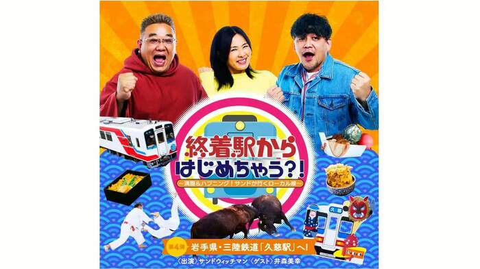 6月6日(日)16時より、フジテレビでは『終着駅からはじめちゃう?!~満腹&ハプニング!サンドが行くローカル線~』(仙台放送制作)が放送される。