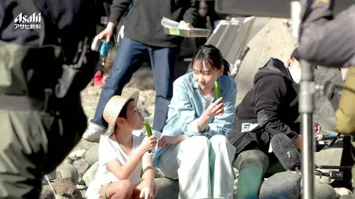 夏編の舞台は涼やかな⼤⾃然の川べり。みずみずしいキュウリを味わい、笑顔を披露する新垣の姿や、同じく、よく冷えたキュウリを味わう中村の爽やかな姿が印象的だ。