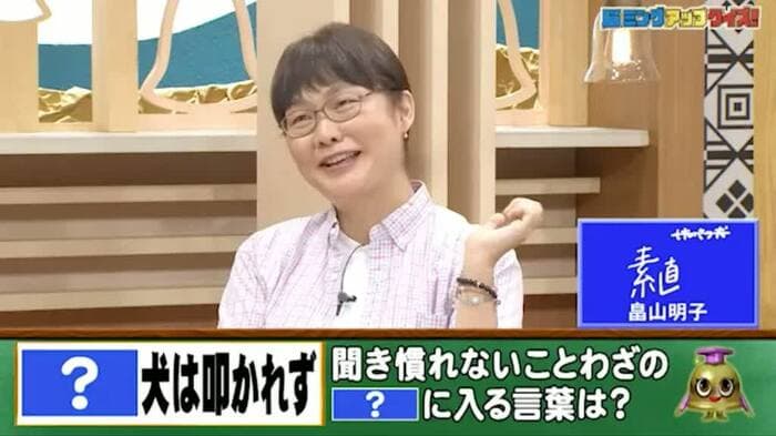 畠山の答えは、「素直」。よく見ると右上に「けいさつ犬」と書かれているが…残念!
