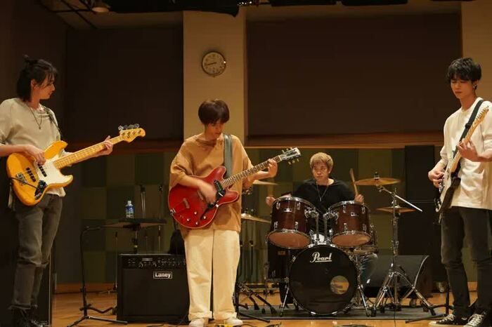 それぞれ限られた時間の中で練習を重ね、リアルに演奏しているライブシーンはキャスト4人も大きな見どころの一つとしてぜひ楽しみにしてほしいと口を揃えている。